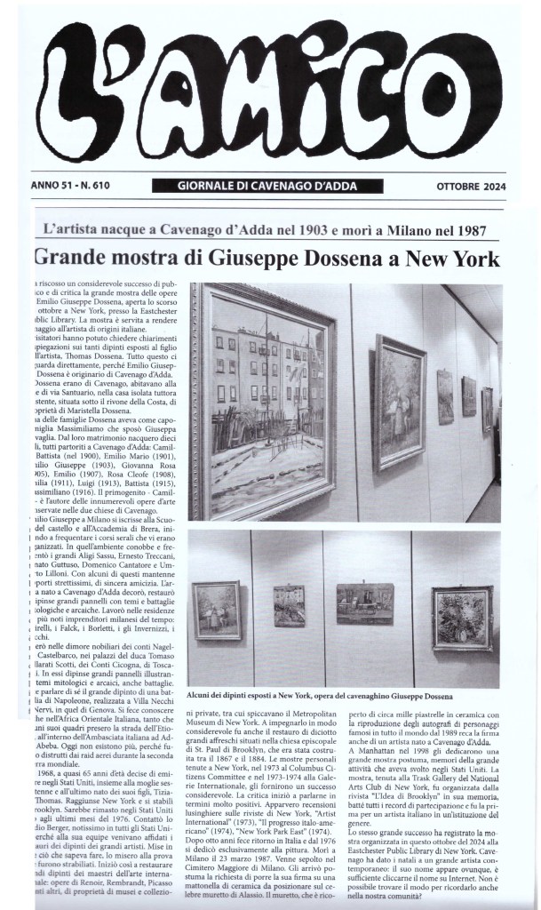 Un simpatico articolo apparso su Emilio Giuseppe Dossena sul giornale di Cavenago d’Adda, paese natio dell’artista… / A nice article appeared on Emilio Giuseppe Dossena in the newspaper of Cavenago d’Adda, the artist’s hometown…